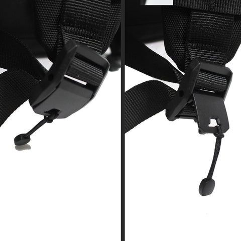 ショルダーハーネス下部のテープ調節パーツ・チェストベルト調節パーツにはDuraflex社製のロック式調節パーツを採用しておりますので、ポジションを決めて頂くと滑りにくくなっております。