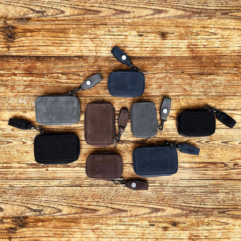 本体レザーにはポルトガル、ヴィーラ・モレイラ地方にある1968年創業のタンナー『 CurtumesIbériaS.A 』のレザーを採用。ヨーロピアンブルの原皮を使用したヌバック型押しレザーはクロム鞣し染料仕上げとなっており、柔らかな手触りで経年変化を楽しめる上質なレザーとなっております。また付属キーリングはDURAFLEX社製のリフレクターホックを使用しております。