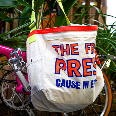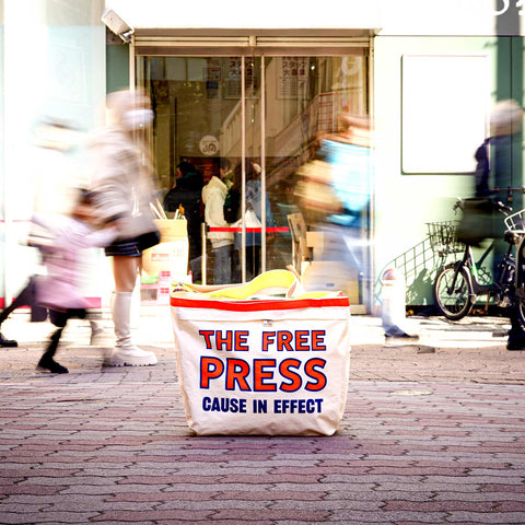 また前面のグラフィックは「 THE FREE PRESS 」1950〜60年代に新聞社が報道の自由をうたって使用した文言を採用。