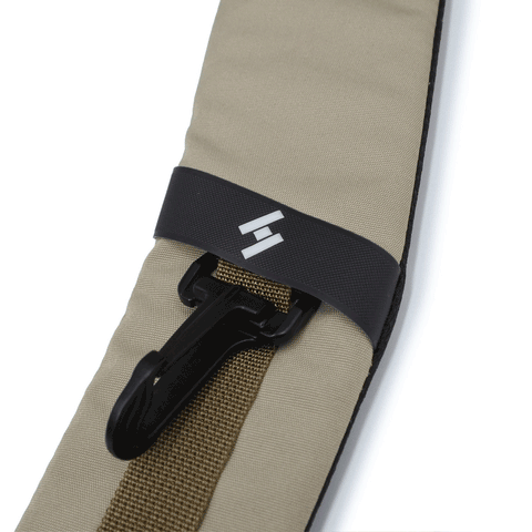 The main body is made of two types of waterproof material, 600d polyester oxford with water repellent treatment on both sides and PVC treatment on the back. The front material is recycled polyester 600d high density oxford, and the other parts are made of 600d polyester canvas. The accessory is an original CIE carabiner with a two-chamber structure using aluminum. The PU label with the embossed CIE logo is made of original thermo material, and is a special thermo-indicating ink that changes to white at 39°C (tolerance ±0.3°C), which visualizes dangerous heat and serves as a temperature indicator for heatstroke.